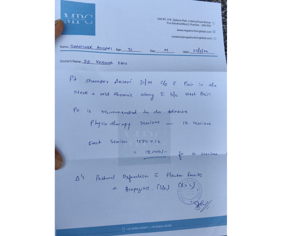 The treatment for my joint pain costs ₹1500 per session, and I need 12 sessions, total ₹18,000. Due to my current financial situation, it has become very difficult for me to afford this treatment.